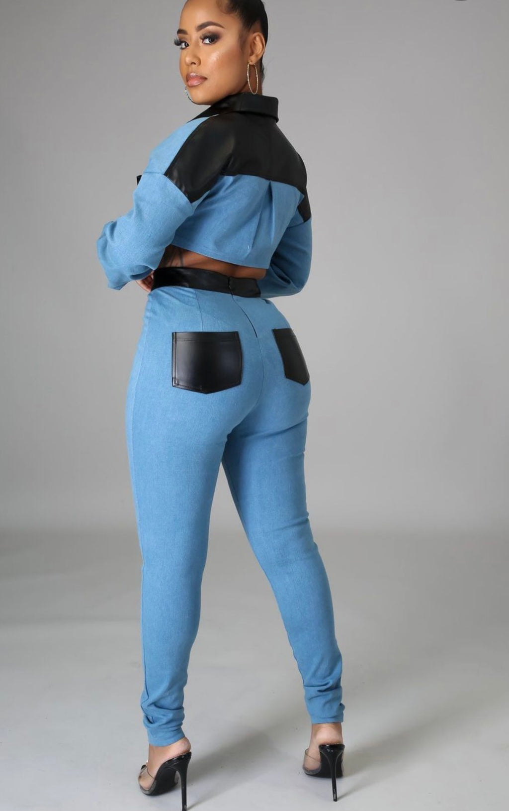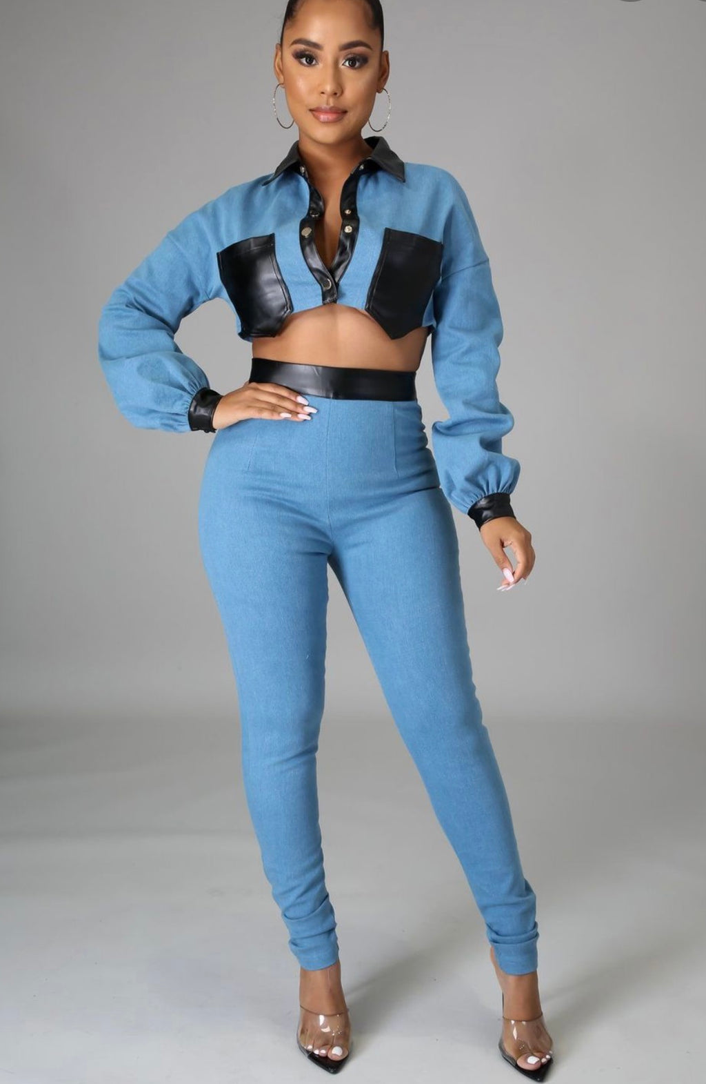 2 Piece Denim Pants Set. Crop top Jacket. True to size no extra stretch.